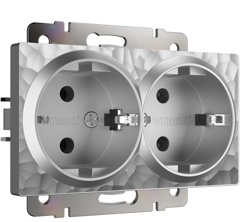 Розетка с заземлением без рамки Werkel Hammer 1-м. 2-мод. серебряный картинка