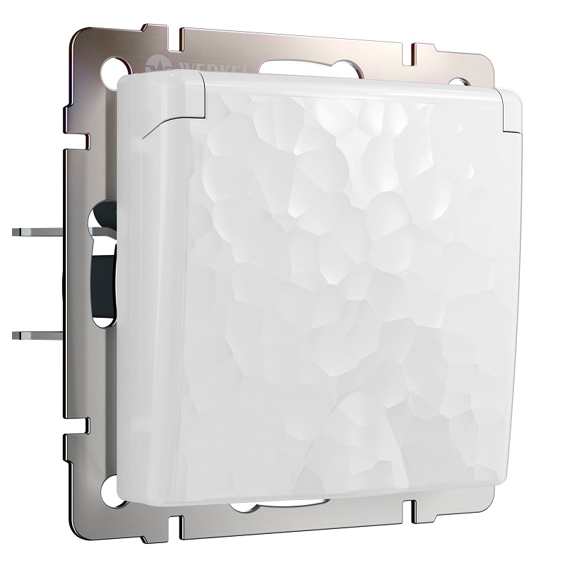 Розетка с заземлением без рамки Werkel Hammer 1-м. крышка шторки IP44 белый