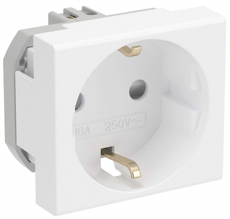 Розетка с заземлением для кабель-канала DKC Viva 1-м. 2 мод. шторки белый