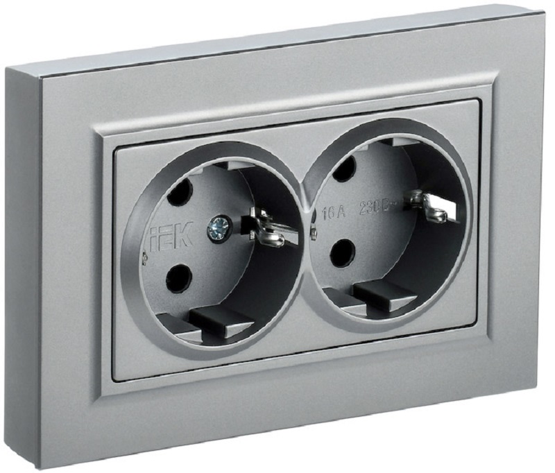 Розетка с заземлением IEK Brite РС12-3-БрА 1-м. 2 мод. алюминий