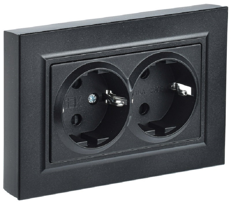 Розетка с заземлением IEK Brite РС12-3-БрЧ 1-м. 2 мод. черный
