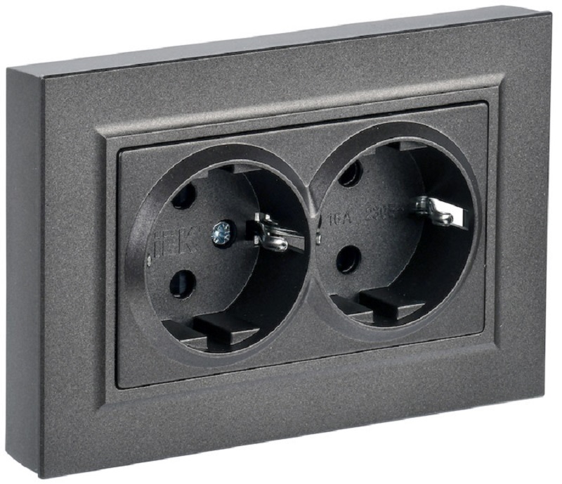 Розетка с заземлением IEK Brite РС12-3-БрТБ 1-м. 2 мод. темная бронза
