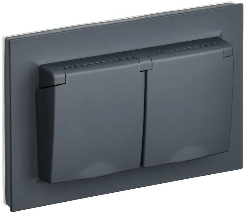Розетка с заземлением IEK Brite РСбш12-3-44-БрГ 1-м. 2 мод. крышка шторки IP44 графит