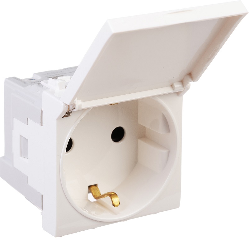 Розетка 2P+E (однофазная розетка с заземлением) модульная с крышкой от ДКС применяется для подключения различных электроприборов. Изделие предназначено для монтажа в системы "In-liner Front" и "In-liner Aero" при помощи рамок-суппортов и каркасов "Avanti" (код 4400912 и т.д.). Лаконичные формы электроустановочных изделий "Avanti" отлично сочетаются с глубокими цветами.