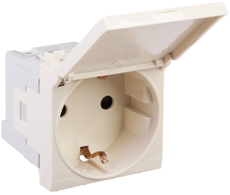 Розетка 2P+E (однофазная розетка с заземлением) модульная с крышкой от ДКС применяется для подключения различных электроприборов. Изделие предназначено для монтажа в системы "In-liner Front" и "In-liner Aero" при помощи рамок-суппортов и каркасов "Avanti" (код 4400912 и т.д.). Лаконичные формы электроустановочных изделий "Avanti" отлично сочетаются с глубокими цветами.