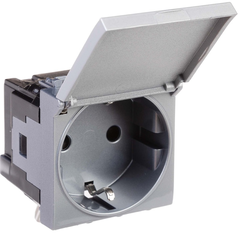 Розетка 2P+E (однофазная розетка с заземлением) модульная с крышкой от ДКС применяется для подключения различных электроприборов. Изделие предназначено для монтажа в системы "In-liner Front" и "In-liner Aero" при помощи рамок-суппортов и каркасов "Avanti" (код 4400912 и т.д.). Лаконичные формы электроустановочных изделий "Avanti" отлично сочетаются с глубокими цветами.