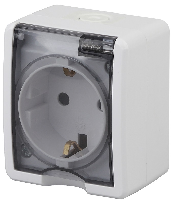 Розетка с заземлением накладная Эра Эксперт 1-м. IP54 белый
