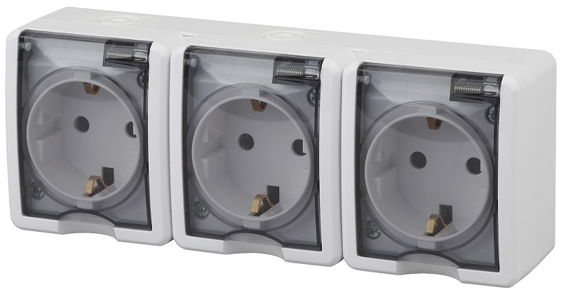 Розетка с заземлением накладная Эра Эксперт 3-м. IP54 белый