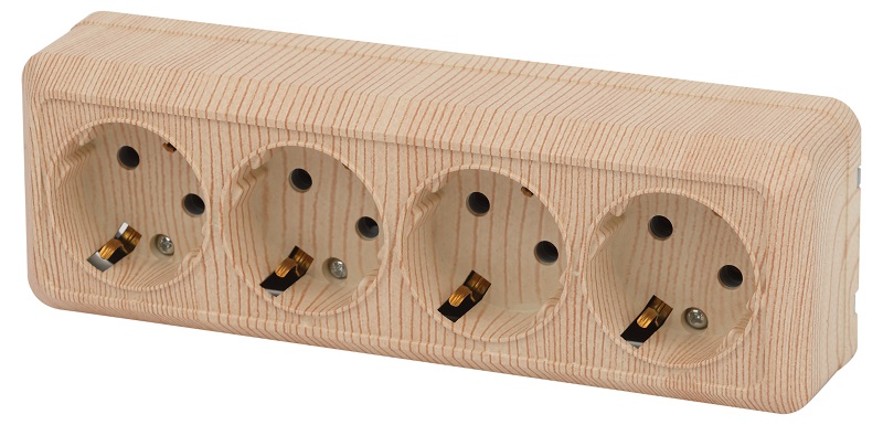 Розетка 4-я серии Intro Quadro открытой установки цвет сосна 2-208-11. Номинальные характеристики 16А 250В. Розетка выполнена из керамики, стали и латуни, оснащёна винтовыми зажимами.
