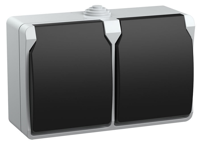 Розетка с заземлением накладная IEK Форс РСб22-3-ФСр 2-м. крышка шторки IP54 серый
