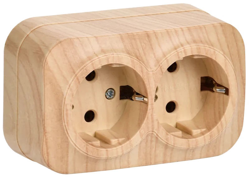 Розетка с заземлением накладная IEK Glory РС22-3-ХС 2-м. сосна картинка