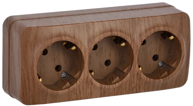 Розетка с заземлением накладная IEK Glory РС23-3-ХД 3-м. дуб картинка