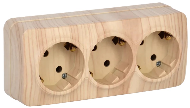 Розетка с заземлением накладная IEK Glory РС23-3-ХС 3-м. сосна картинка