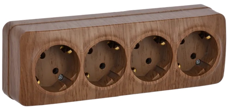 Розетка с заземлением накладная IEK Glory РС24-3-ХД 4-м. дуб картинка