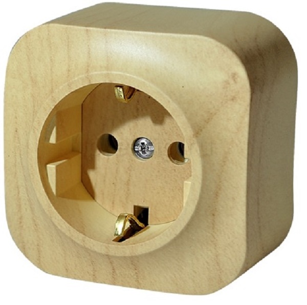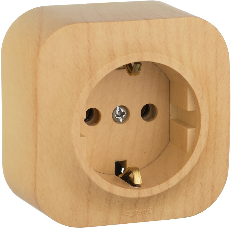 Розетка с заземлением накладная Legrand Quteo 1-м. дерево картинка