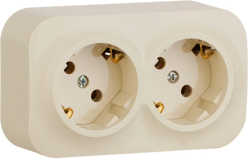 Розетка с заземлением накладная Legrand Quteo 2-м. слоновая кость картинка