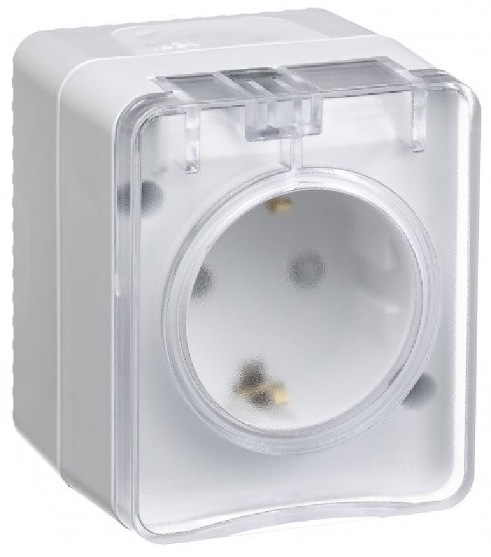 Розетка с заземлением накладная Systeme Electric AtlasDesign Profi54 1-м. крышка IP54 белый