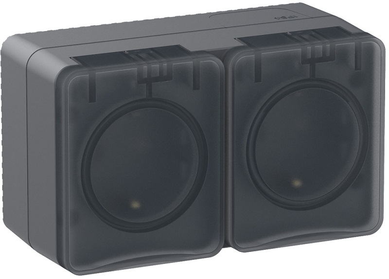 Розетка с заземлением накладная Systeme Electric AtlasDesign Profi54 2-м. крышка IP54 антрацит картинка