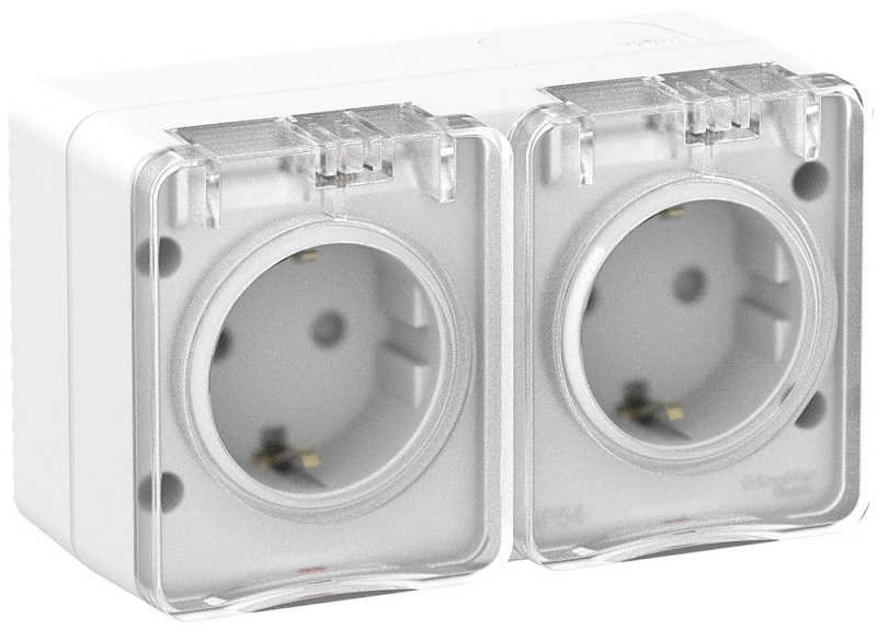 Розетка с заземлением накладная Systeme Electric AtlasDesign Profi54 2-м. крышка IP54 белый картинка