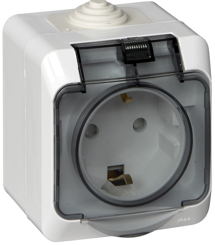 Розетка с заземлением накладная Systeme Electric Этюд 1-м. шторки IP44 белый