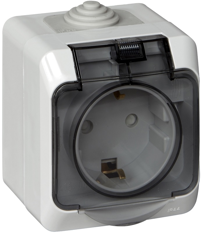 Розетка с заземлением накладная Systeme Electric Этюд 1-м. шторки IP44 серый картинка