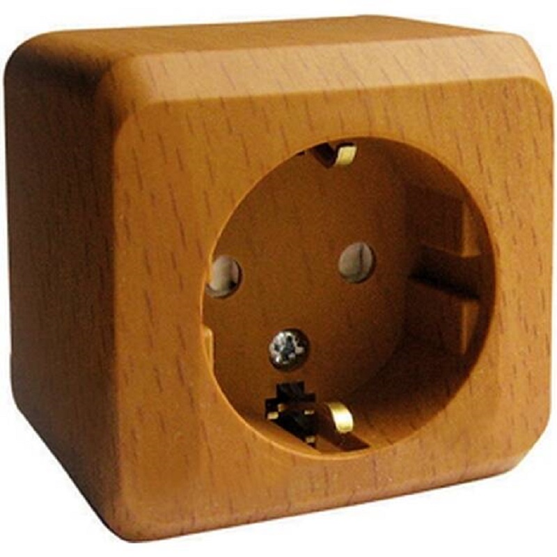 Розетка с заземлением накладная Systeme Electric Этюд Дача 1-м. шторки бук картинка
