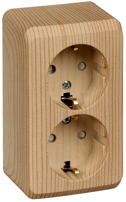 Розетка с заземлением накладная Systeme Electric Этюд Дача 2-м. шторки сосна