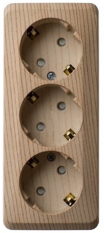 Розетка с заземлением накладная Systeme Electric Этюд Дача 3-м. шторки сосна картинка