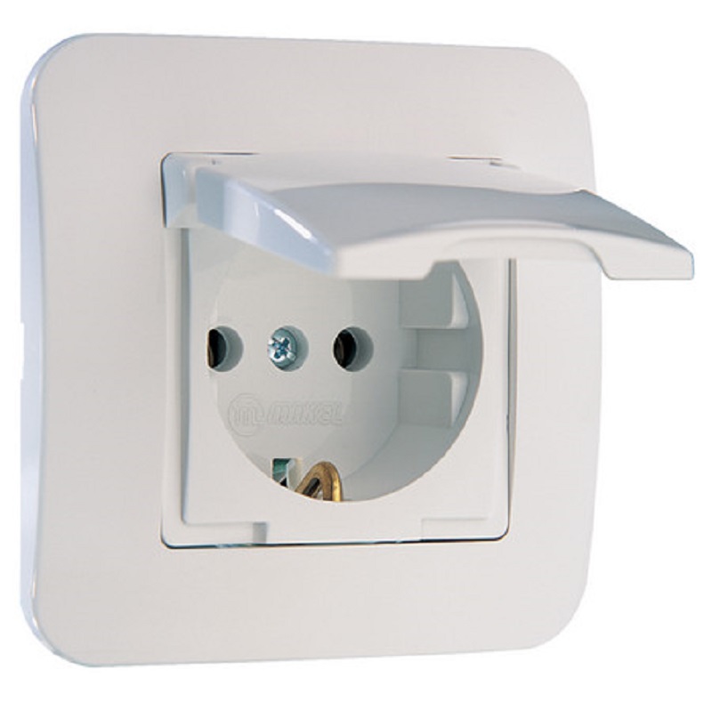 Розетка с заземлением с рамкой ASD Classico 2114 1-м. крышка шторки белый картинка