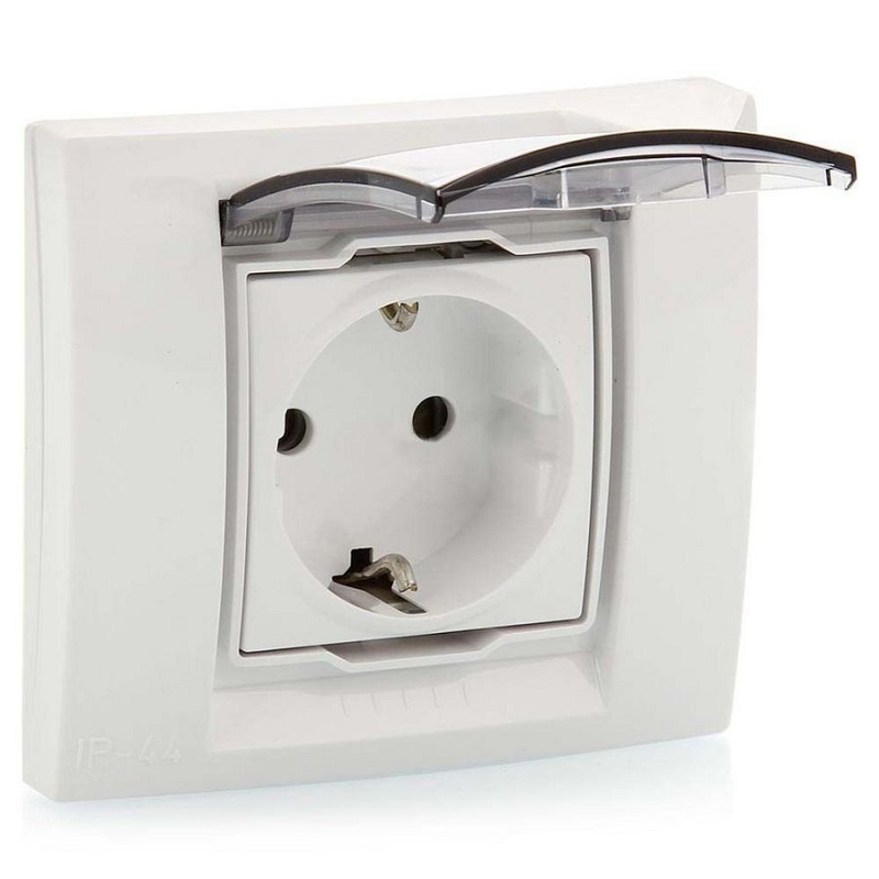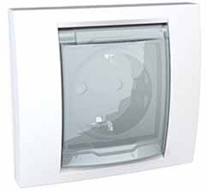 Розетка с заземлением с рамкой Schneider Electric Unica 1-м. крышка шторки IP44 белый