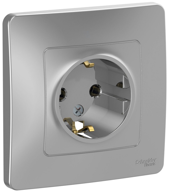 Розетка с заземлением с рамкой Systeme Electric Blanca 1-м. алюминий