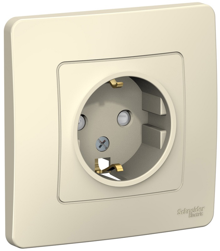 Розетка с заземлением с рамкой Systeme Electric Blanca 1-м. шторки молочный