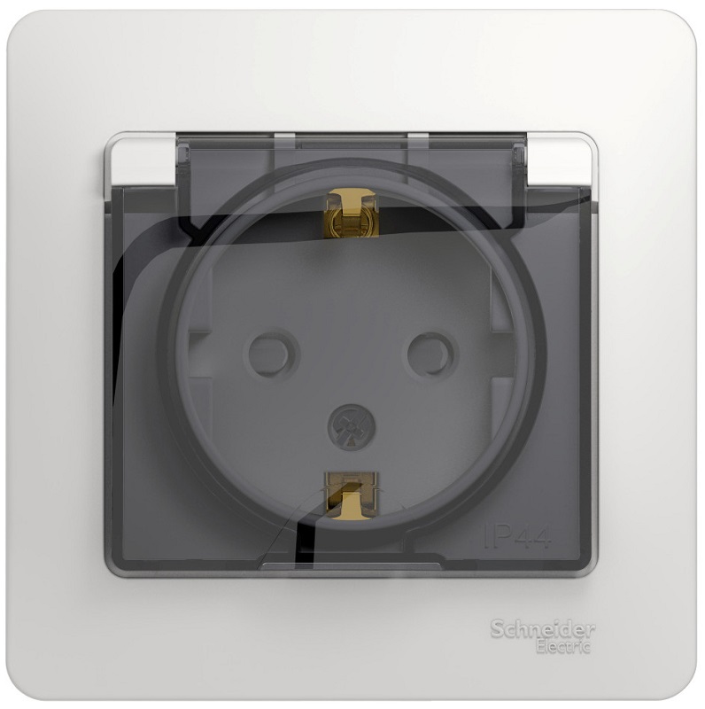 Розетка с заземлением с рамкой Systeme Electric Glossa 1-м. крышка шторки IP44 белый