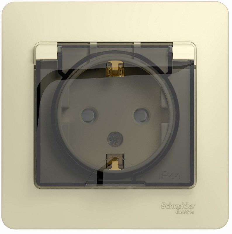 Розетка с заземлением с рамкой Systeme Electric Glossa 1-м. крышка шторки IP44 бежевый