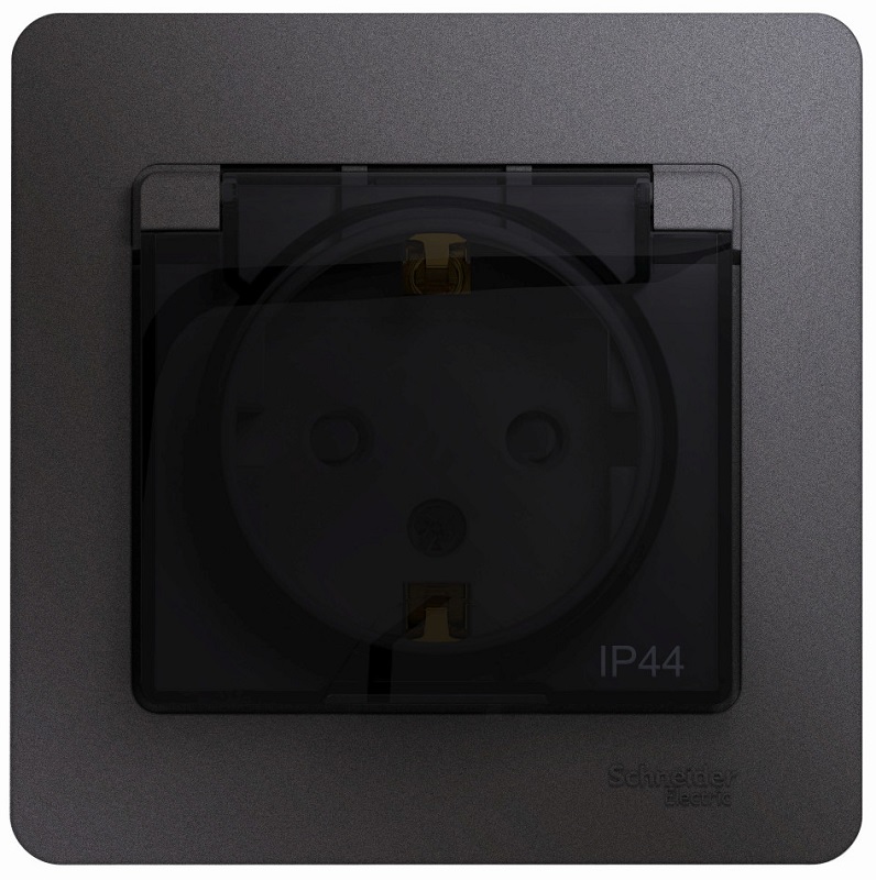 Розетка с заземлением с рамкой Systeme Electric Glossa 1-м. крышка шторки IP44 графит картинка