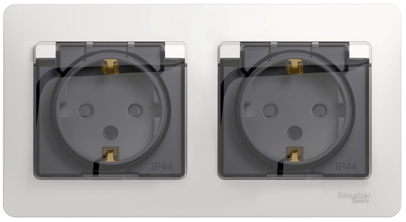 Розетка с заземлением с рамкой Systeme Electric Glossa 2-м. крышка шторки IP44 белый