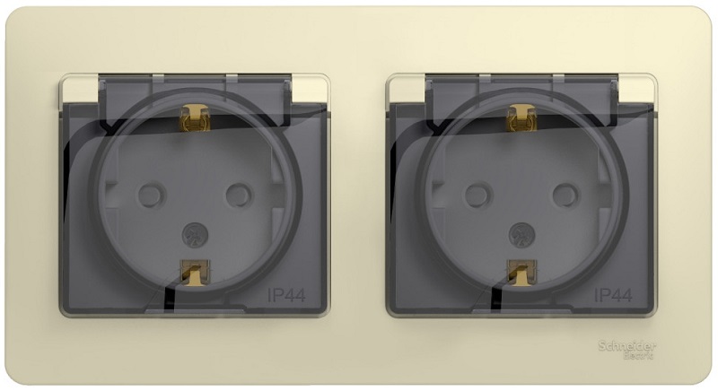 Розетка с заземлением с рамкой Systeme Electric Glossa 2-м. крышка шторки IP44 бежевый