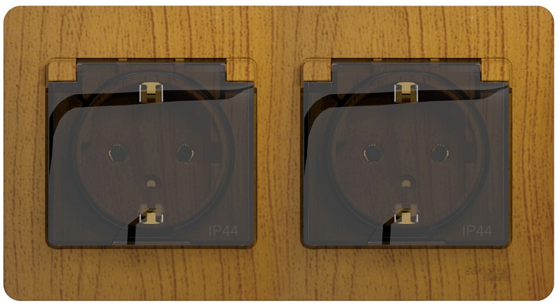 Розетка с заземлением с рамкой Systeme Electric Glossa 2-м. крышка шторки IP44 дерево
