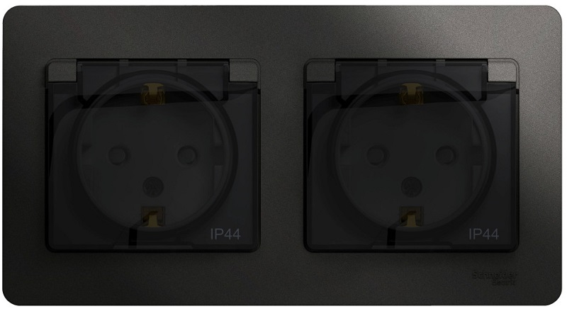 Розетка с заземлением с рамкой Systeme Electric Glossa 2-м. крышка шторки IP44 графит