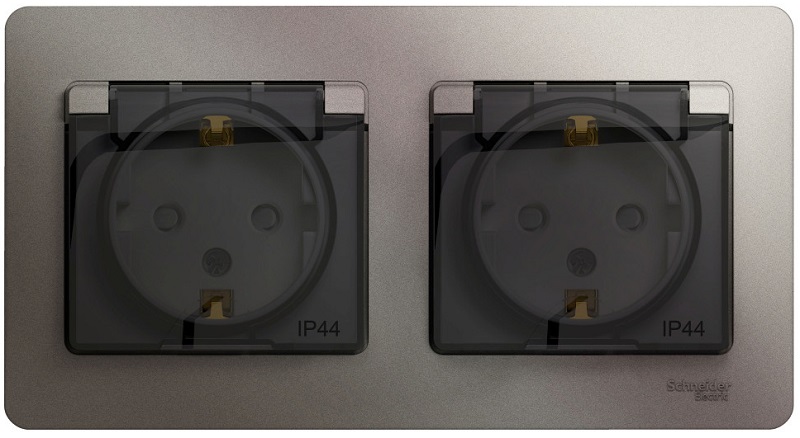 Розетка с заземлением с рамкой Systeme Electric Glossa 2-м. крышка шторки IP44 платина картинка