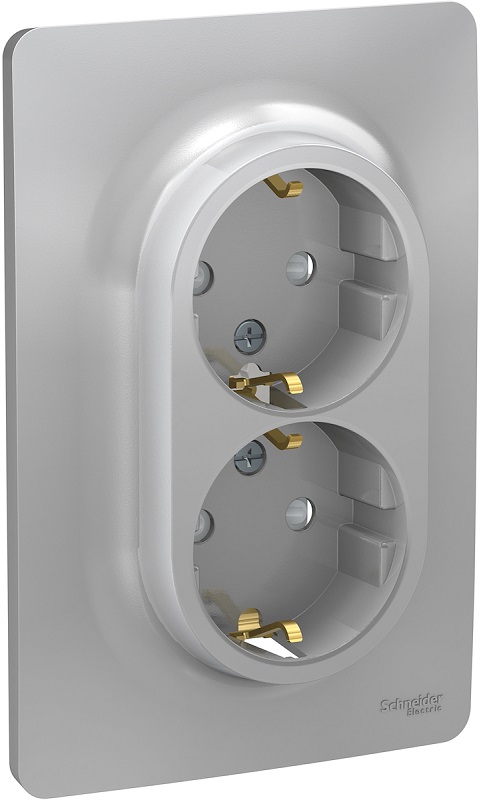 Розетка с заземлением Schneider Electric Unica New 1-м. 2 мод. шторки алюминий