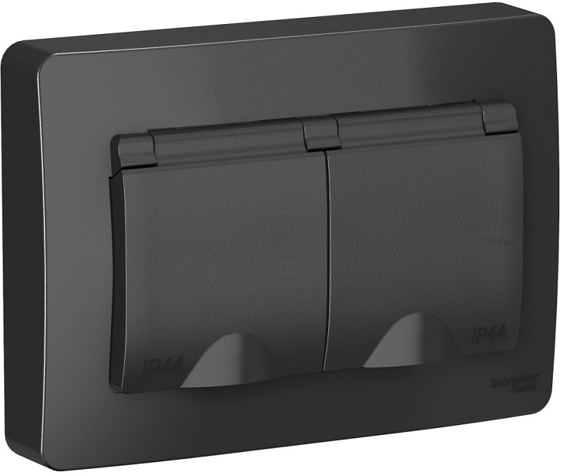 Розетка с заземлением Systeme Electric Blanca 1-м. 2-мод. крышка шторки IP44 антрацит