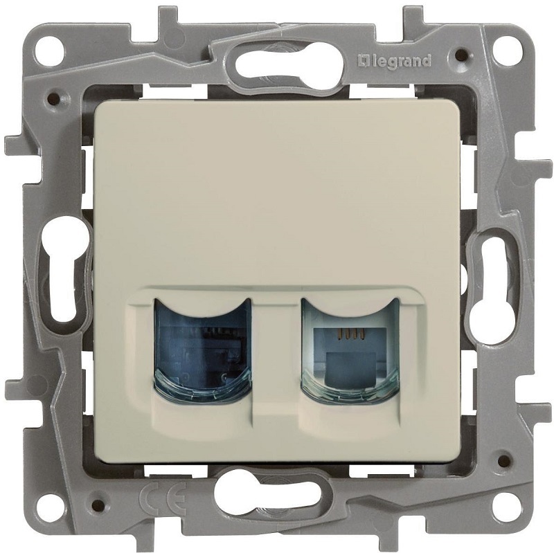 Розетка телефон+компьютер без рамки Legrand Etika 2-м. RJ11+RJ45 5е слоновая кость  картинка