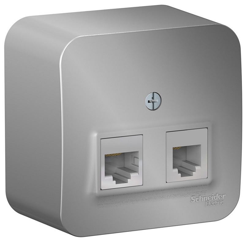 Розетка телефон+компьютер накладная Systeme Electric Blanca 2-м. RJ11+RJ45 5е алюминий