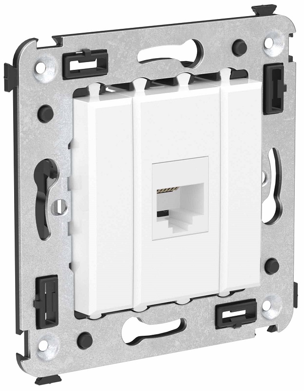 Телефонная розетка RJ-12 без шторки используется для коммутации линий телефонной связи в патч-панелях или для связи телефонных аппаратов с розеткой. Предназначена для скрытого монтажа в стену, поставляется в комплекте с суппортом. Материал – металл, термопласт.