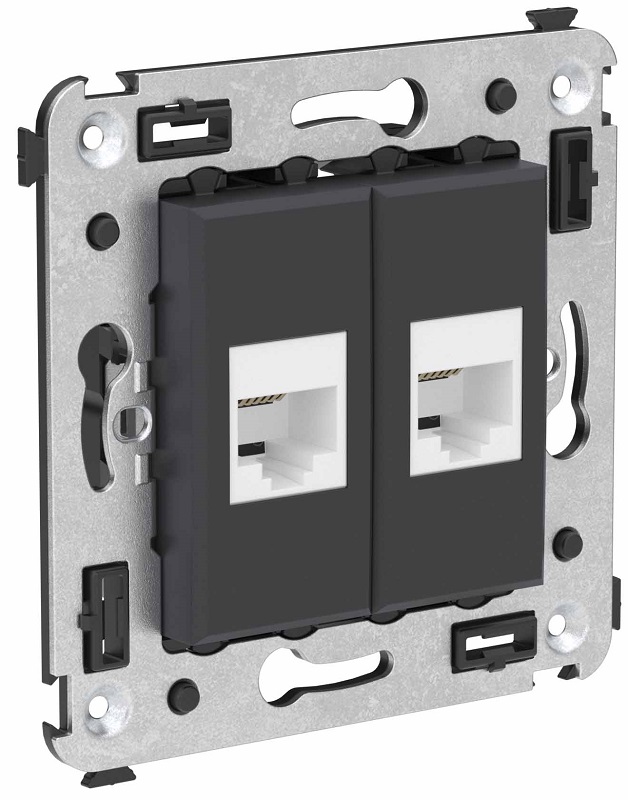 Розетка телефонная без рамки DKC Avanti 2-м. RJ12+RJ12 черный матовый