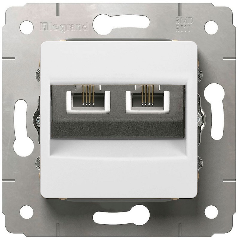Розетка телефонная без рамки Legrand Cariva 2-м. RJ11+RJ11 белый картинка