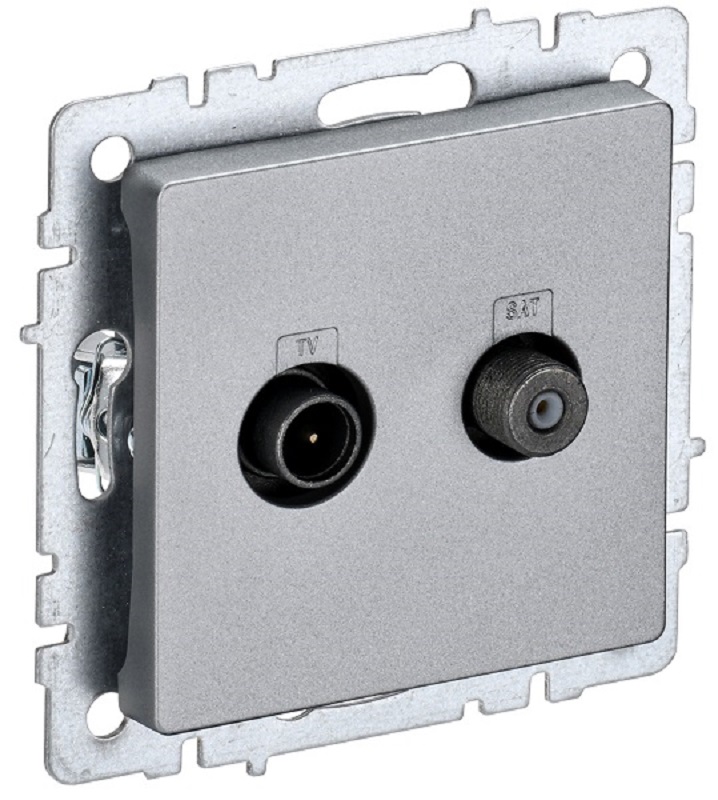 Розетка TV+SAT Оконечная без рамки IEK Brite РТВ/РСп12-БрА 2-м. алюминий