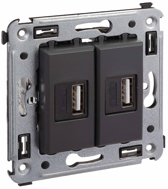 Розетка USB тип А+А без рамки DKC Avanti 2-м. 2100мА черный матовый