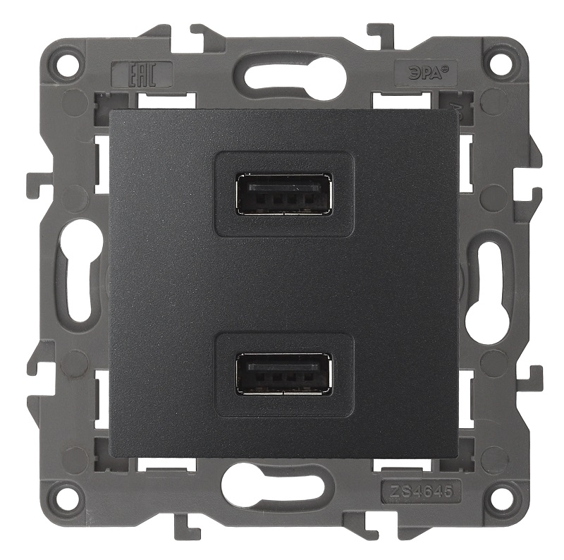 Розетка USB тип A+A без рамки Эра Elegance 2-м. 2100мА антрацит